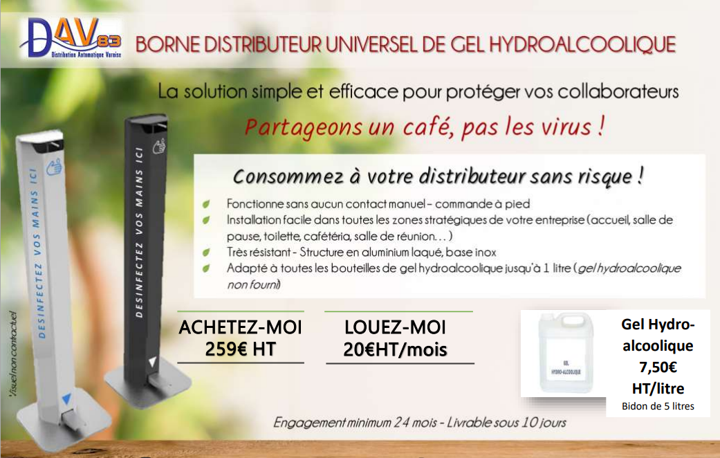 Deux types de borne de gel, deux contenances, deux tarifs :